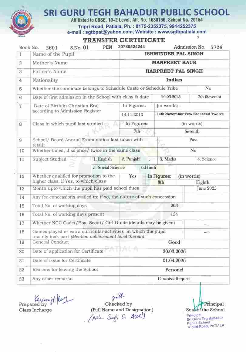 Ishminder pal Singh(5726) VII 2025-26