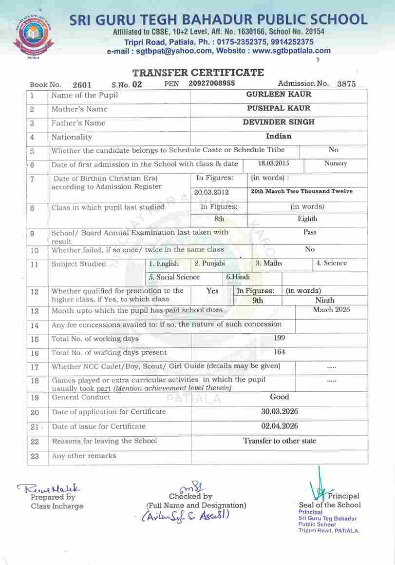 Gurleen Kaur(3875) VIII 2025-26