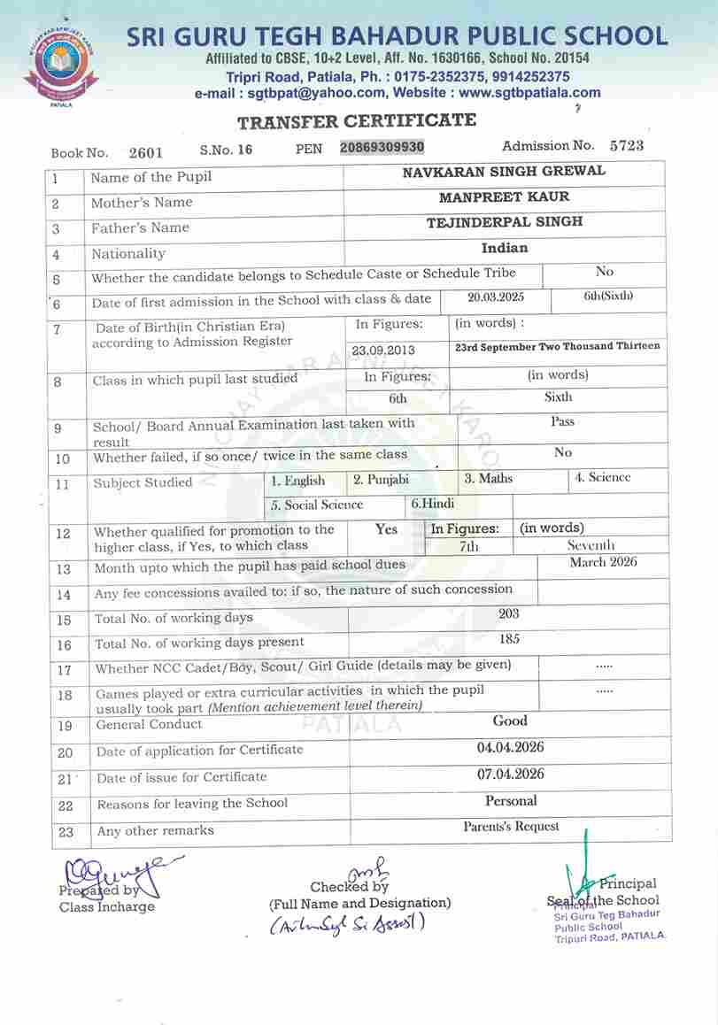 Navkaran Singh Grewal(5723) VI 2025-26