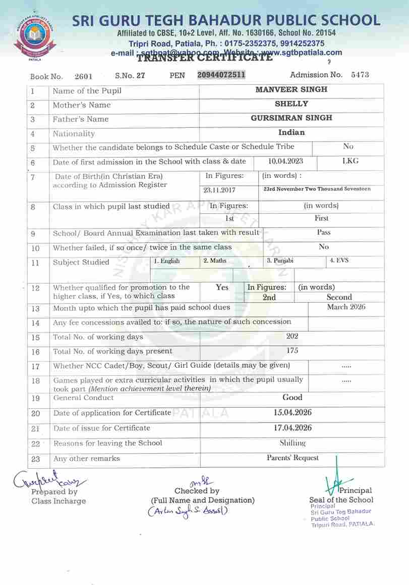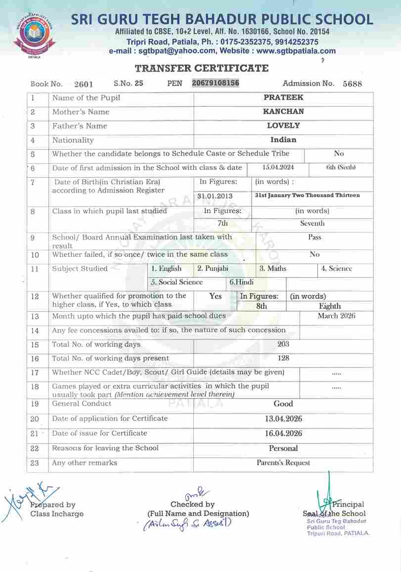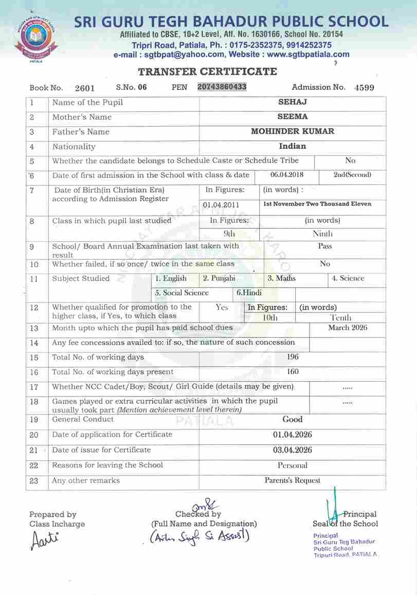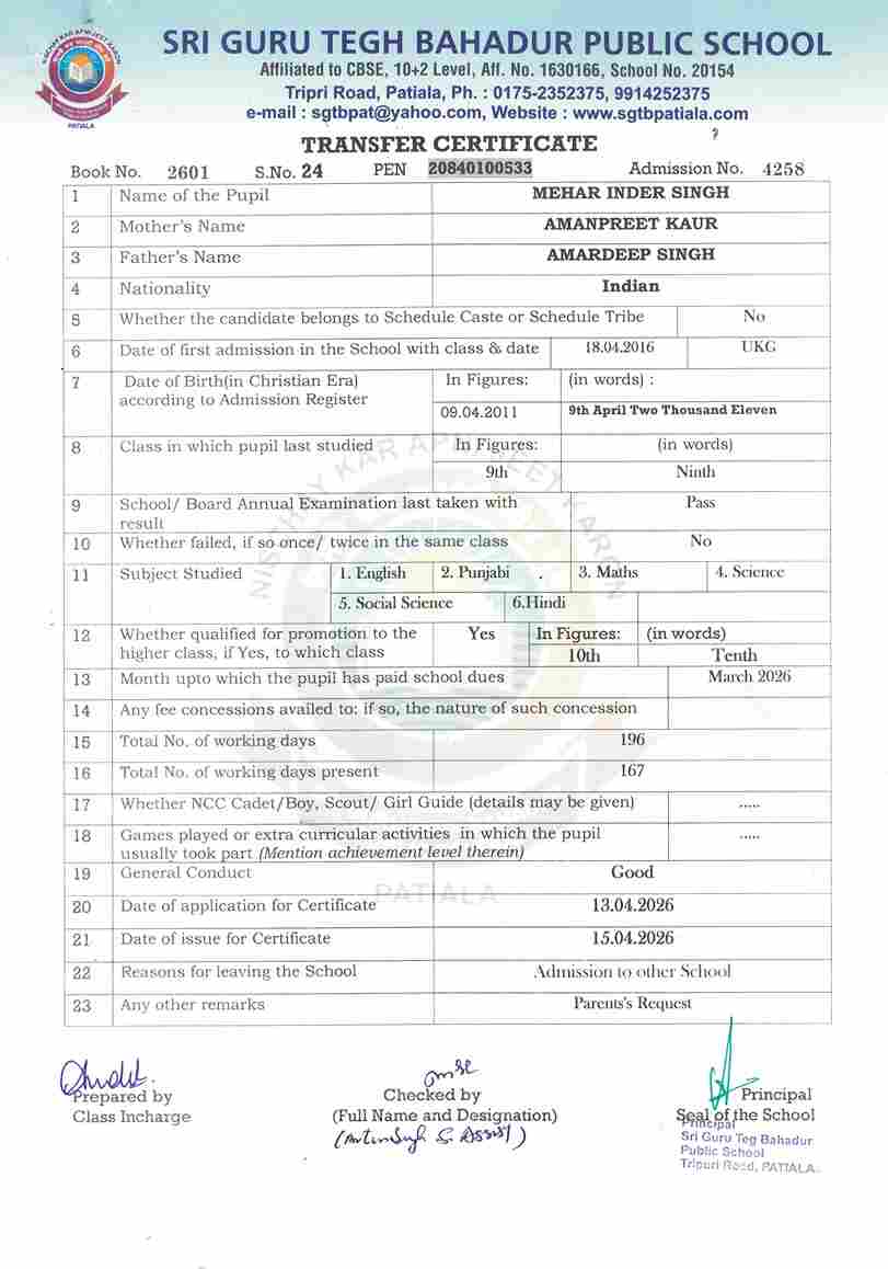 Mehar Inder Singh(4258) IX 2025-26