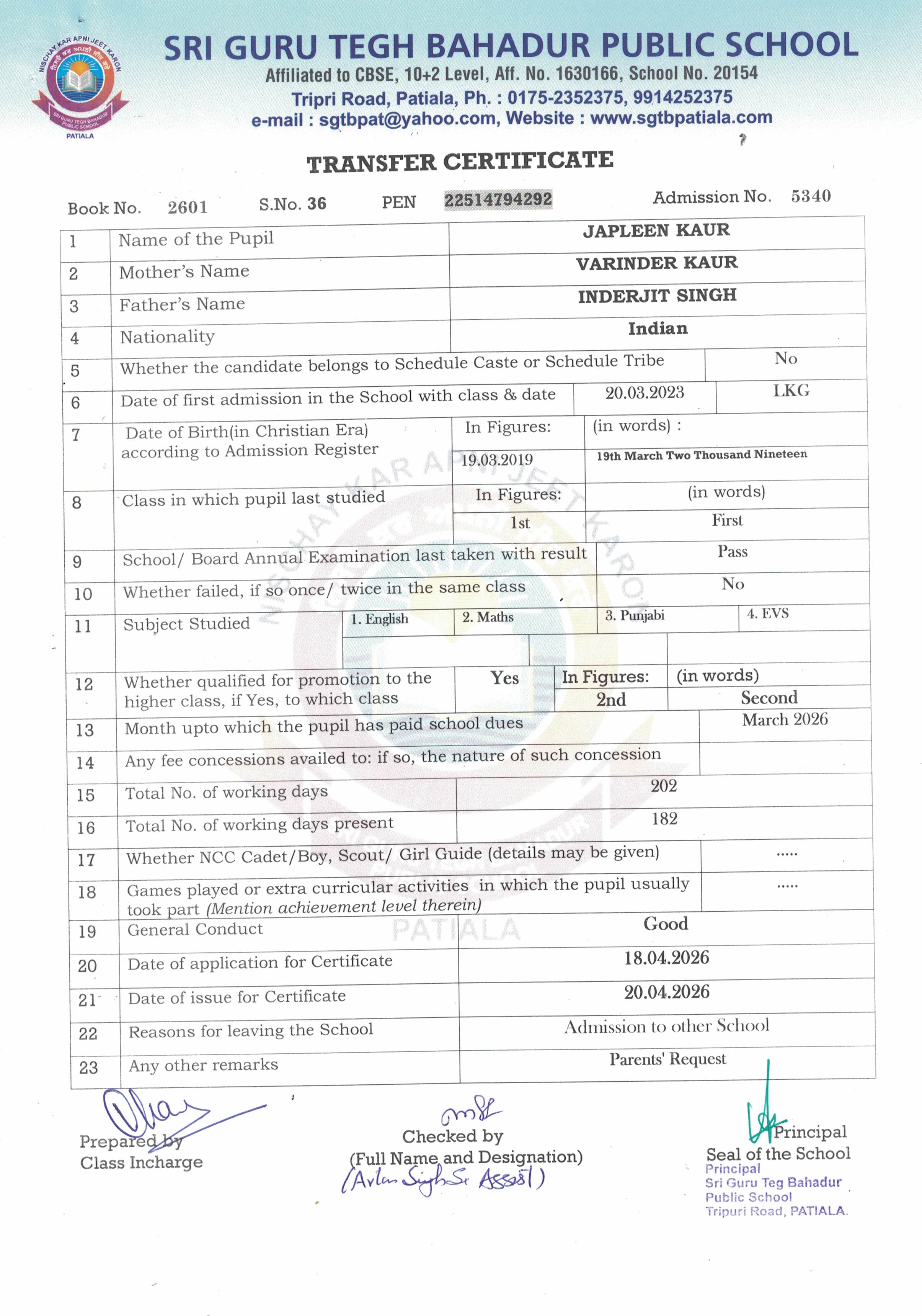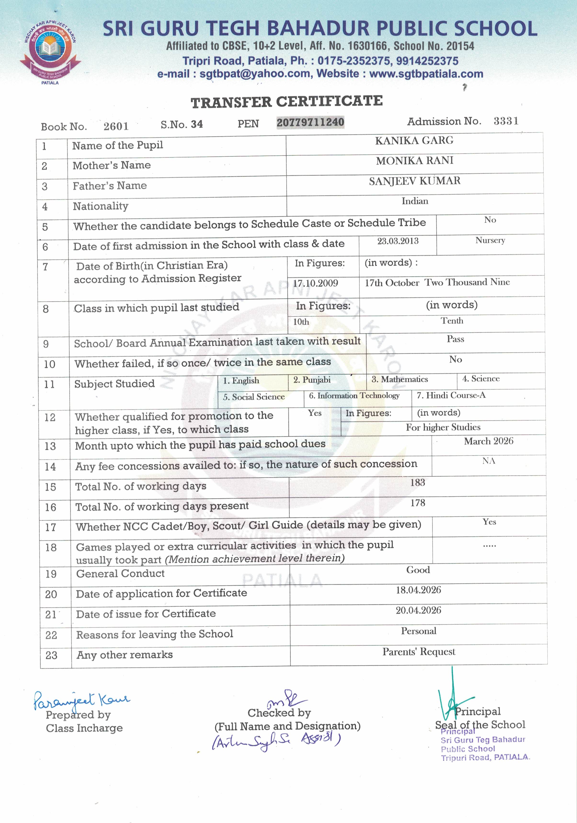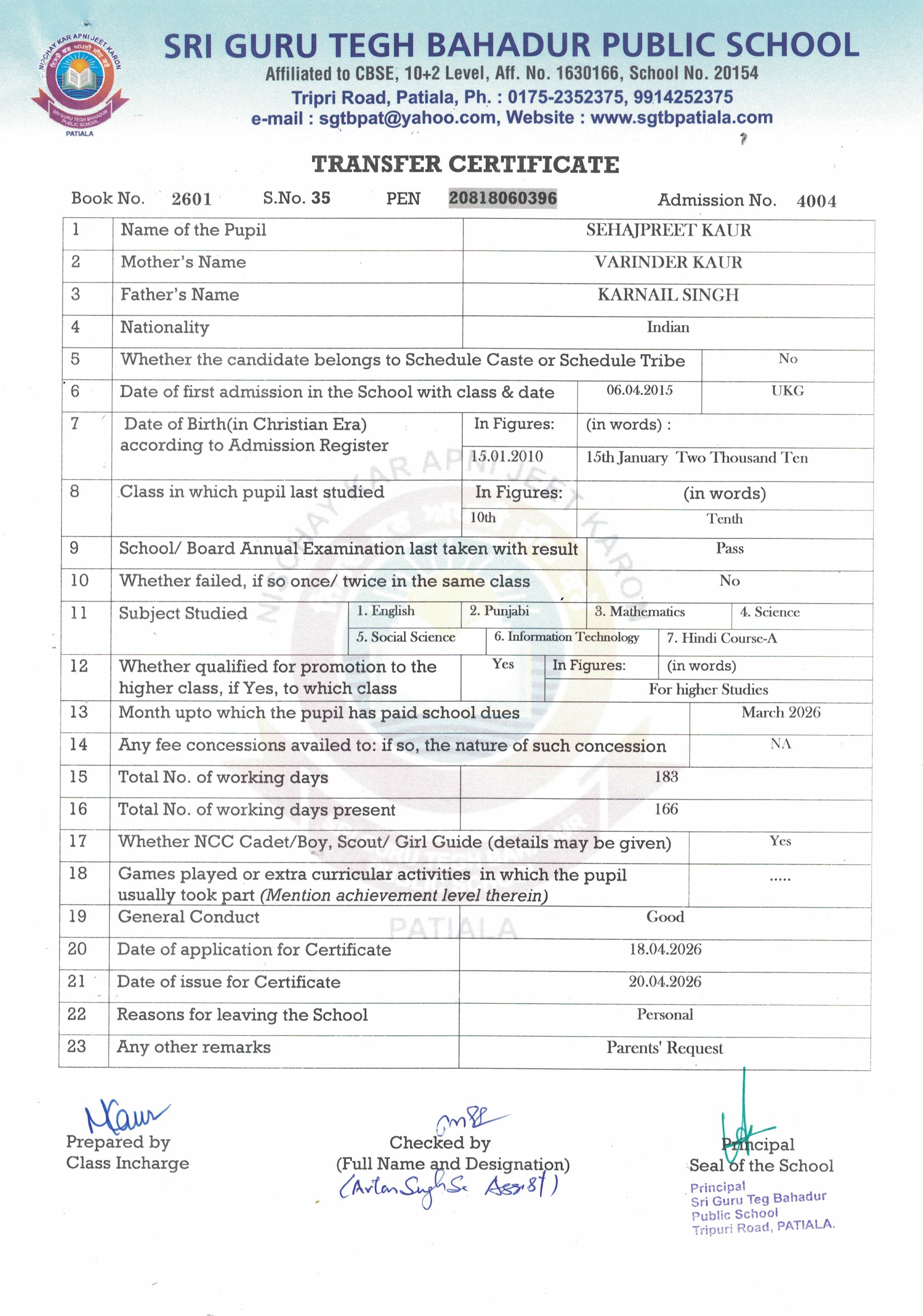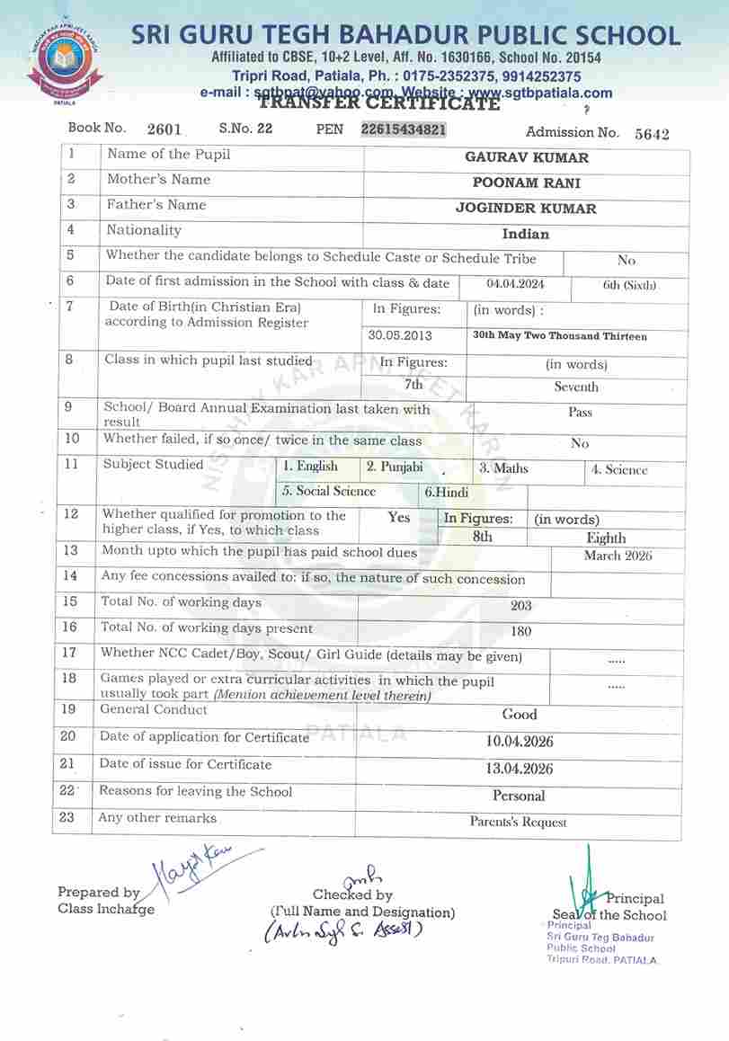 Mehar Inder Singh(4258) IX 2025-26