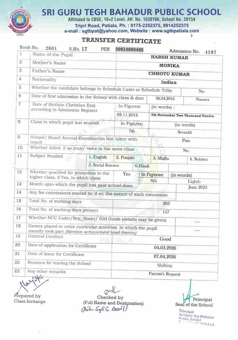 Harsh Kumar(4197) VII 2025-26