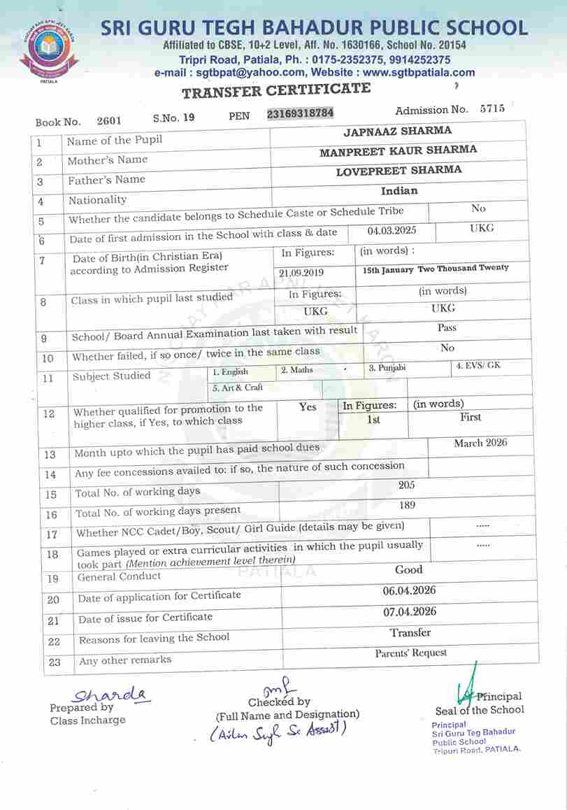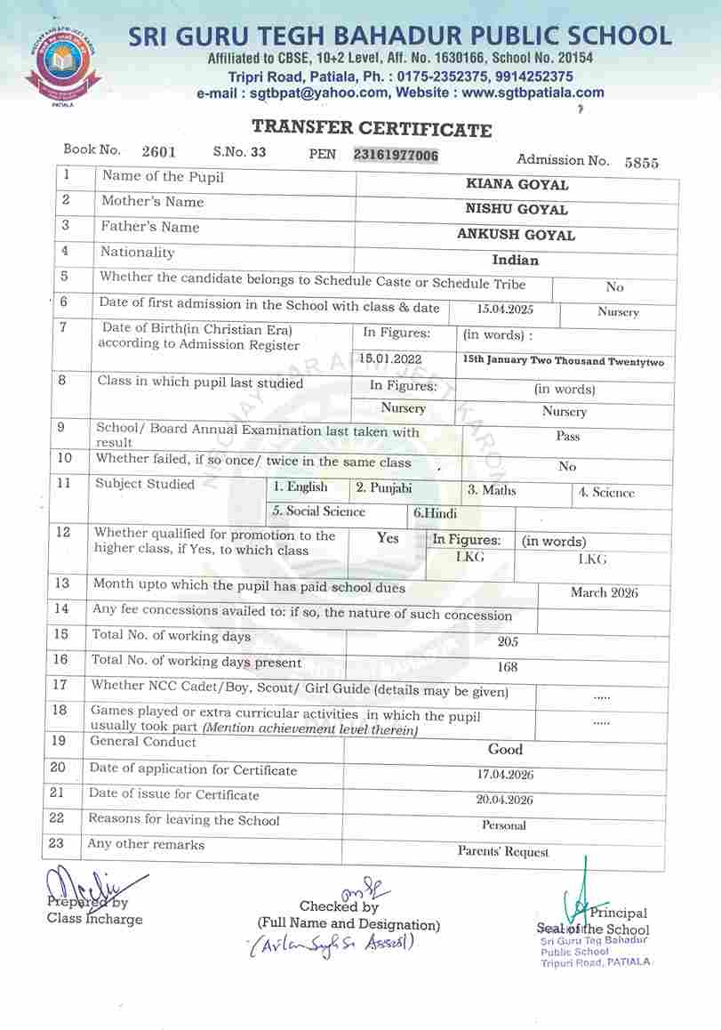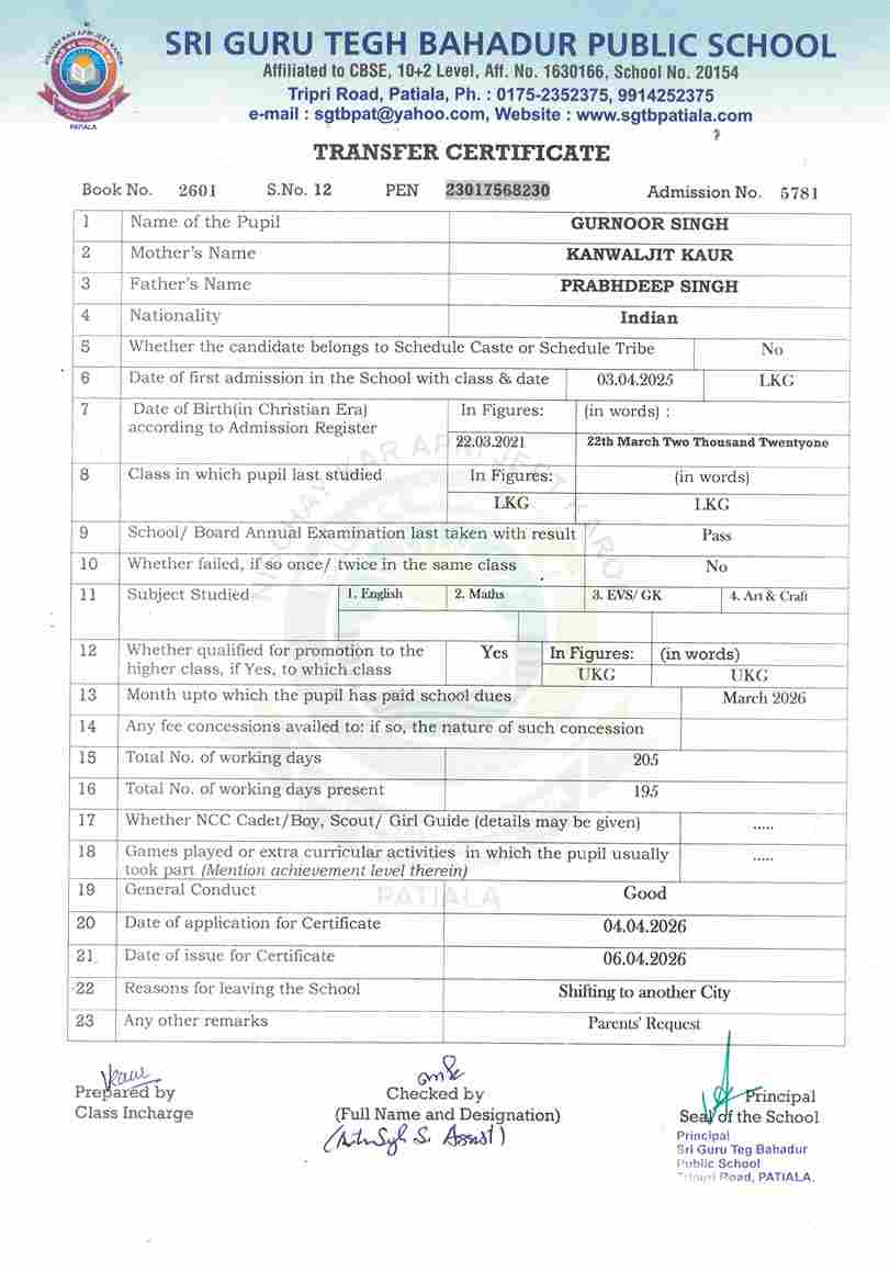 Guramrit Singh(5401) UKG 2025-26