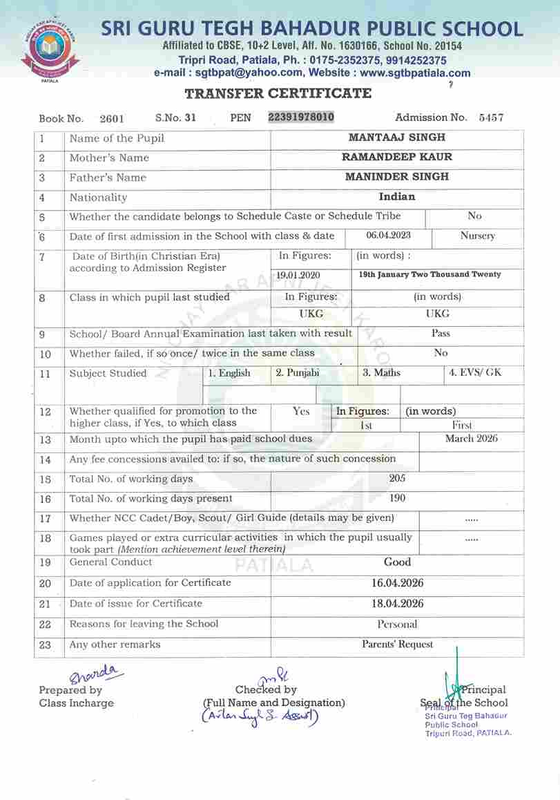 Mantaaj Singh(5457) UKG 2025-26