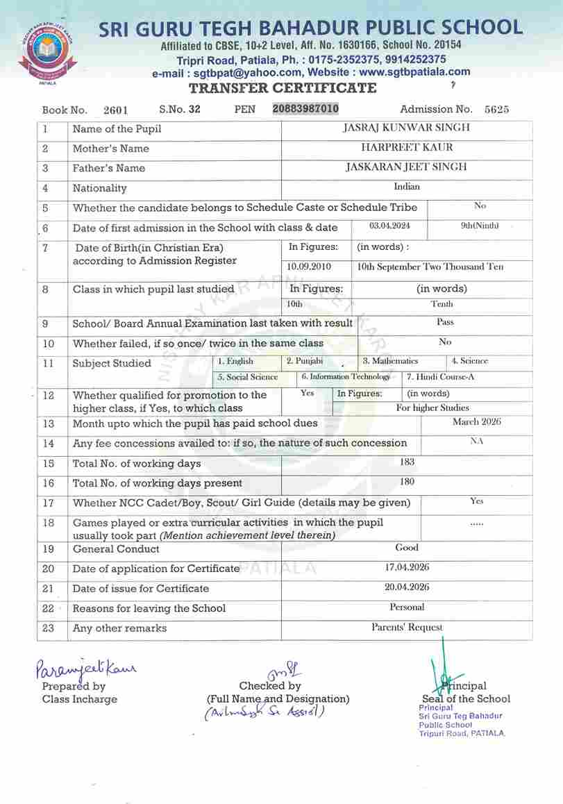 Jasraj Kumwar Singh(5625) after passing X in 2025-26UKG 2025-26
