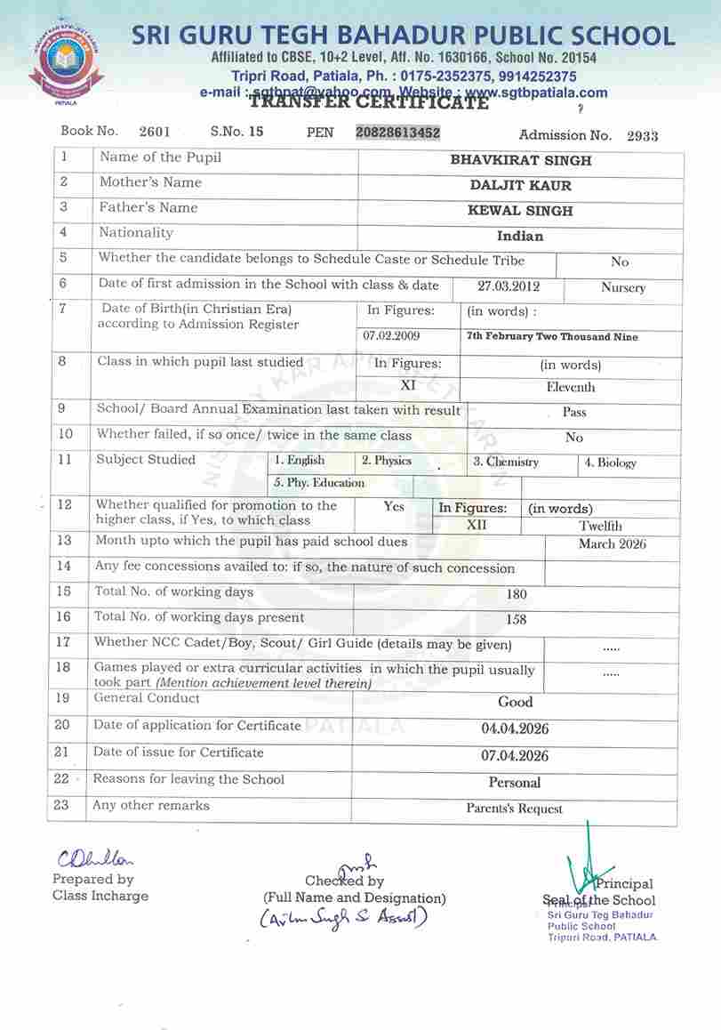Bhavkirat Singh(2933) XI 2025-26