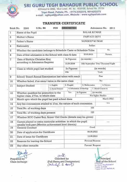 Gurkanwal Singh5104) After passing X in 2024-25