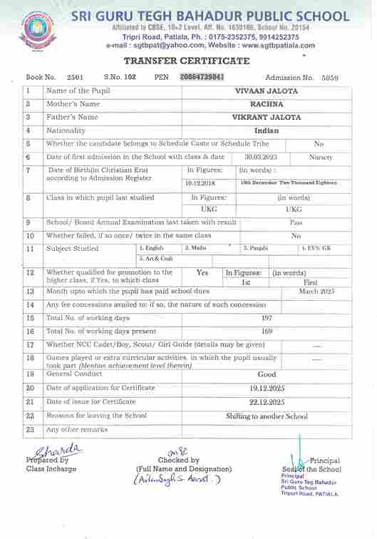 Vivaan Jalota(5059) passed UKG in March 2025