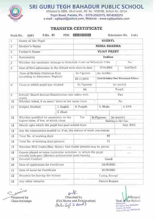 Harsimrat Kaur(4245)After passing X in 2024-25