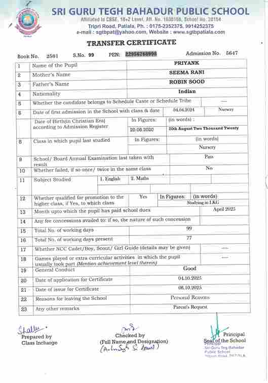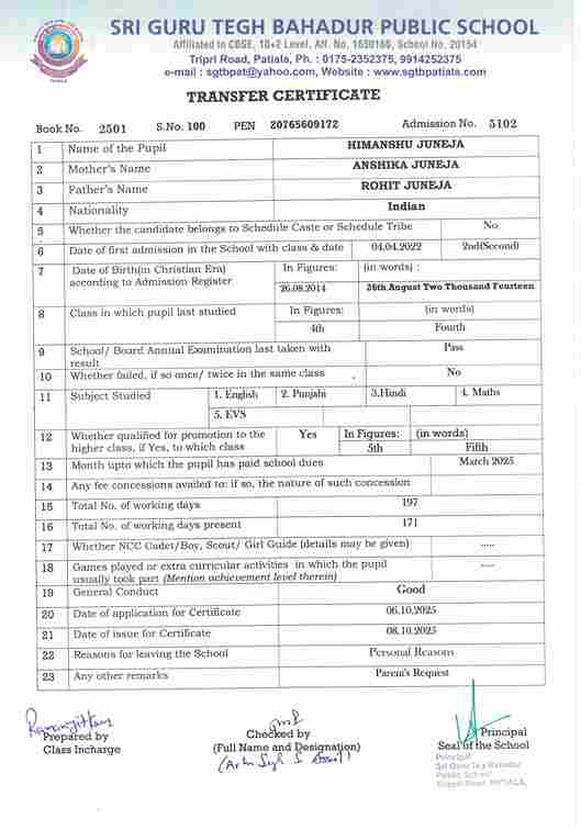 Sukhman Singh Sidhu(5704) ) Studying in XII 2025-26