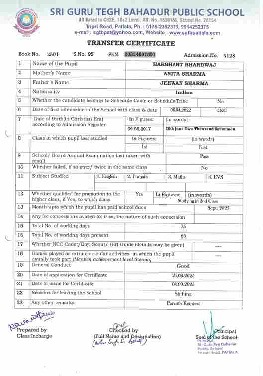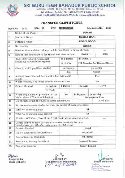 Sukhman Singh Sidhu(5704) ) Studying in XII 2025-26